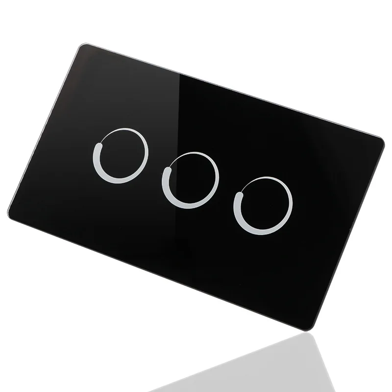 Ultra clear light switch cover plate glass use crystal glass (also be called ultra clear glass) as material,The product adopt manufacture step as follow:cutting, polishing edge, tempering, silk screen printing, cleaning, filming etc.In th last ,get a perfect product.